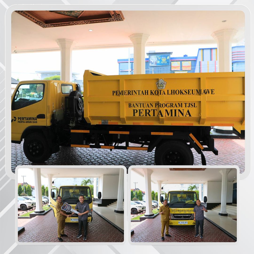 Wali Kota Lhokseumawe Terima Bantuan Truk Sampah Arm Roll dari PT Perta Arun Gas