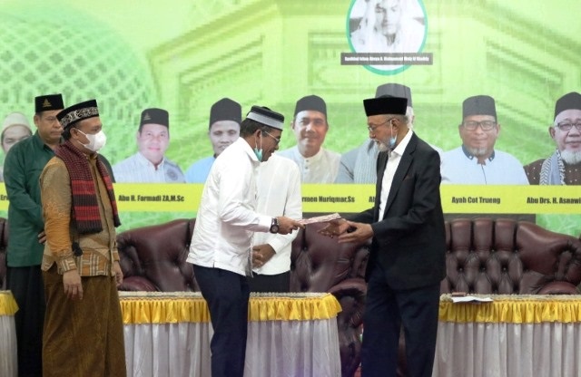 Muzakarah Ulama se-Aceh di Aula Syeckh Syamsuddin As-Sumaterani Islamic Center Kota Lhokseumawe, Minggu (23/01/2022) sore resmi ditutup oleh Wali Nanggroe Malik Mahmud Al-Haytar.