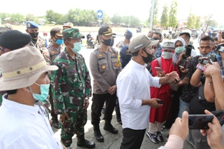 Lhokseumawe ~ Sekretaris Daerah Kota Lhokseumawe, T. Adnan, SE beserta unsur Forkopimda Kota Lhokseumawe, melaksanakan penertiban masker pengguna jalan, yang berlangsung di Terminal Bus Kota Lhokseumawe, Rabu (22/04).