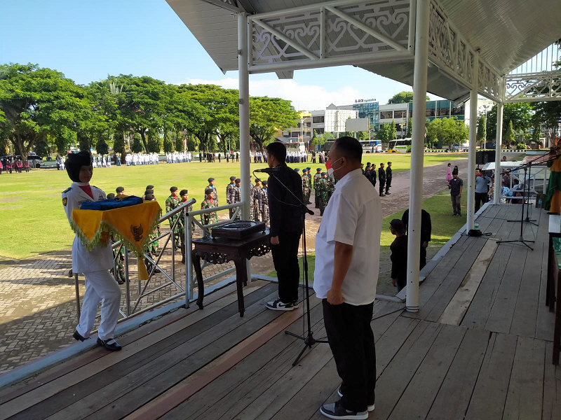Menjelang pelaksanaan Upacara Pengibaran Bendera Sang Merah Putih dalam rangka HUT Peringatan Detik-Detik Proklamasi Kemerdekaan RI Ke-77 Tahun 2022.