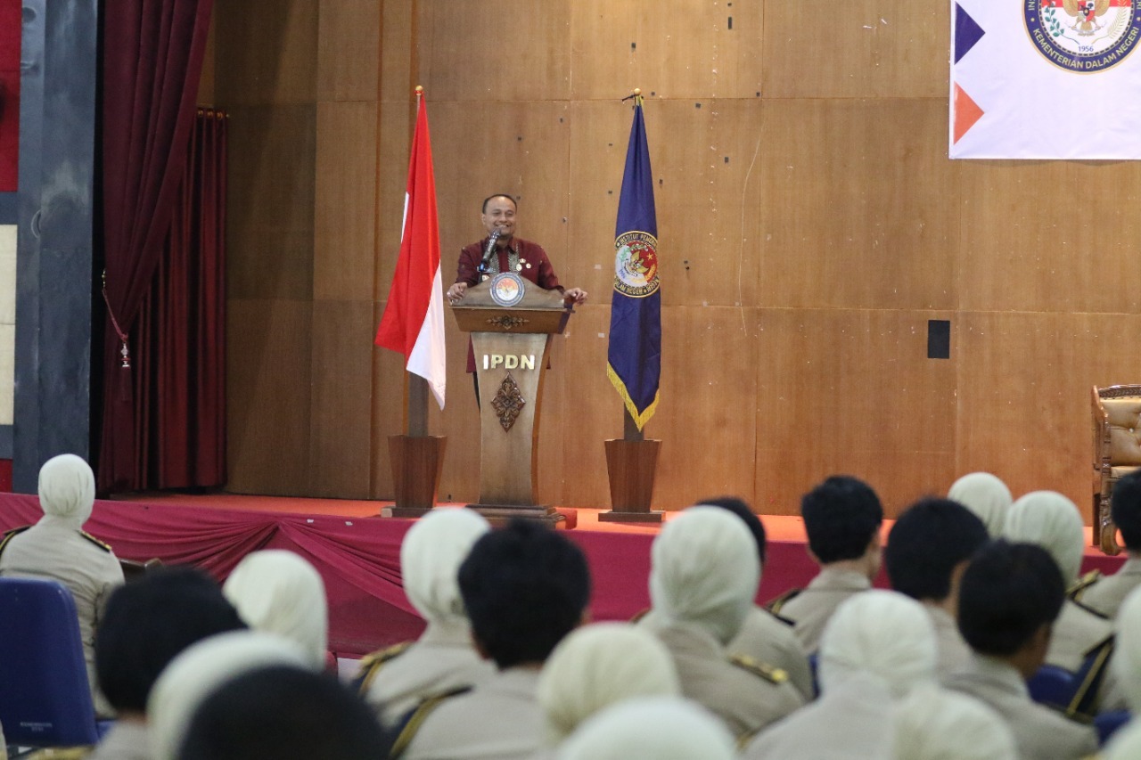Imran yang disambut oleh Direktur IPDN Kampus Sumbar Dr. Tun Huseno, SE, M.Si diberikan kesempatan berharga untuk membekali Praja Muda mengenai peran ASN sebagai perekat dan pemersatu bangsa.